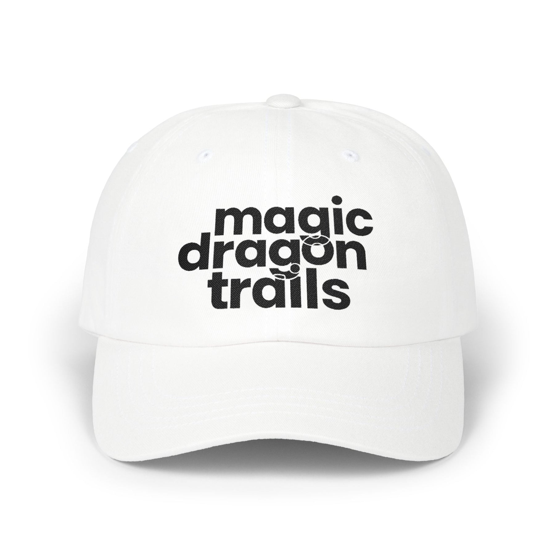 Magic Dragon Trails Dad Cap — Embroidered White Baseball Hat